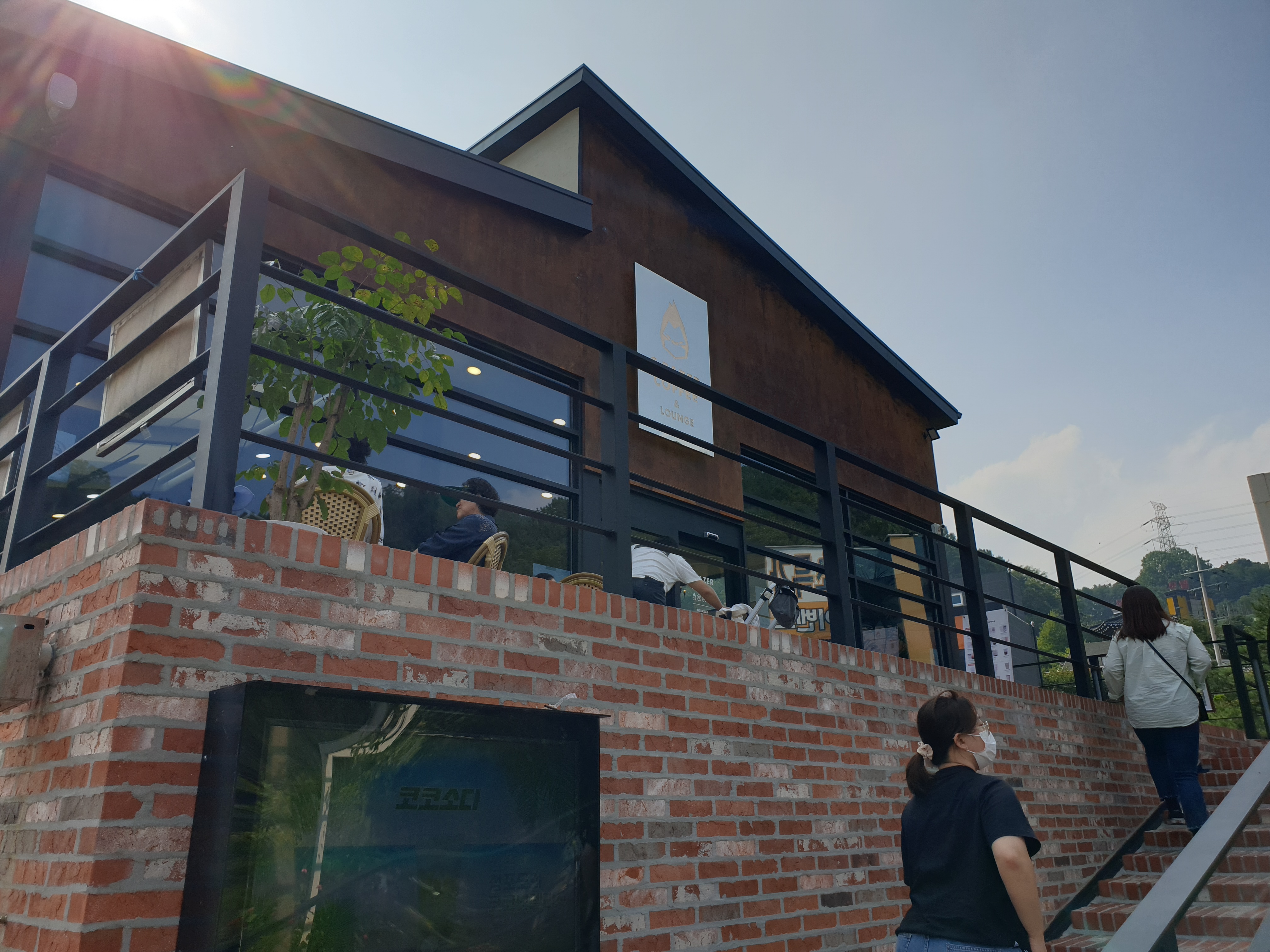 동이손만두에서 식사를 한 영수증을 가져가면 할인을 해주는 바로 옆 커피숍.. 우린 김꼬물과 함께라 바깥 자리에 앉았다.