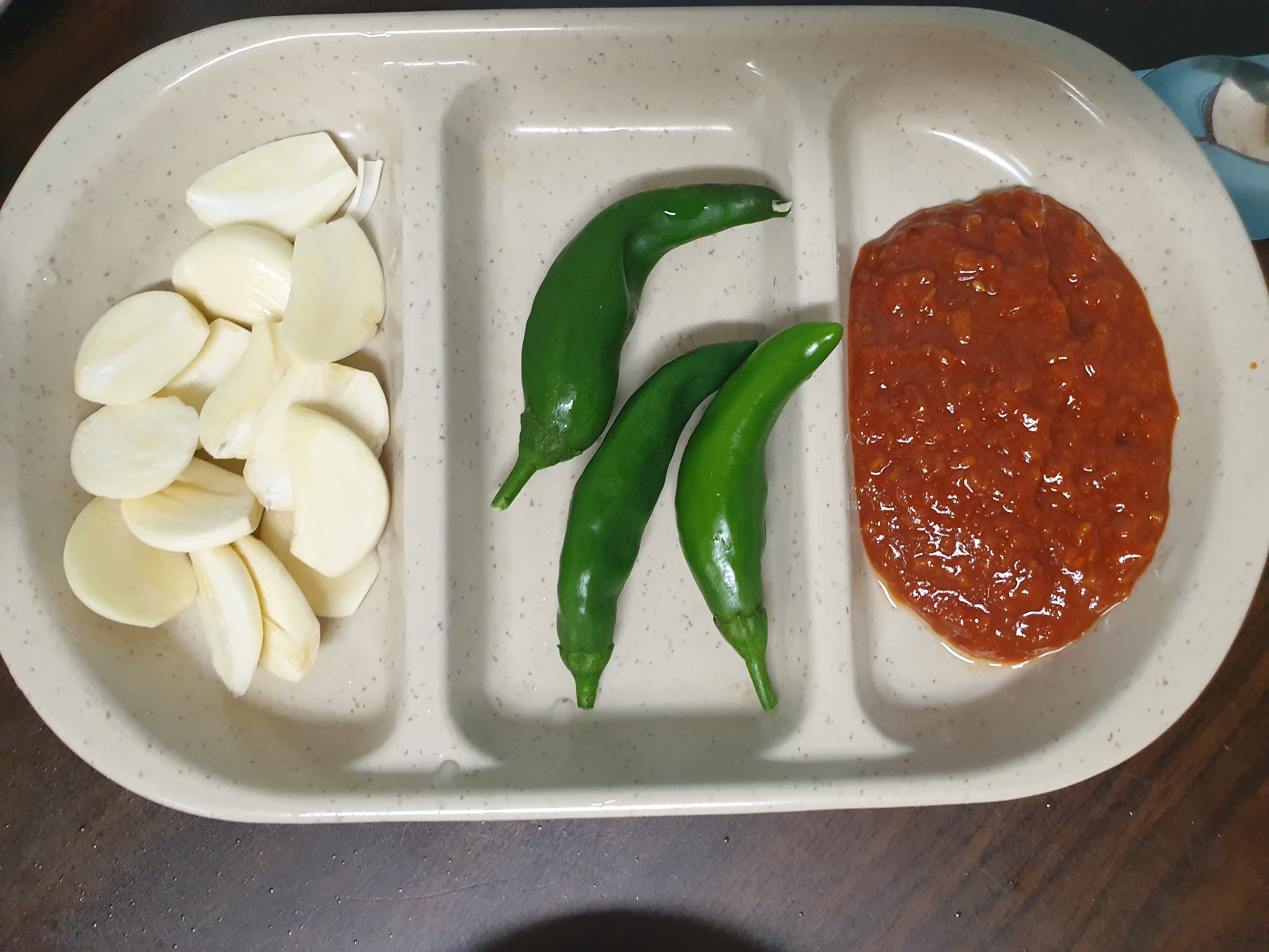 엄마는 어디서나 고기 드실 때 청양고추 잘라 함께 드시는데 이건 너무 맵다 하신다.